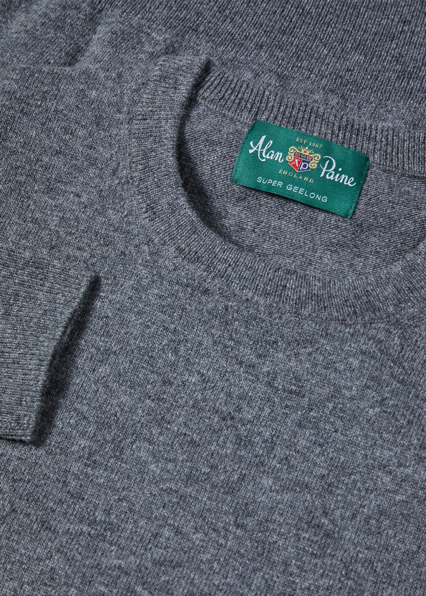 This jumper is crafted from a lighter weight pure geelong lambswool. All Alan Paine knitwear is fully fashioned; each garment is knitted to shape on the knitting machine and not cut and sewn.