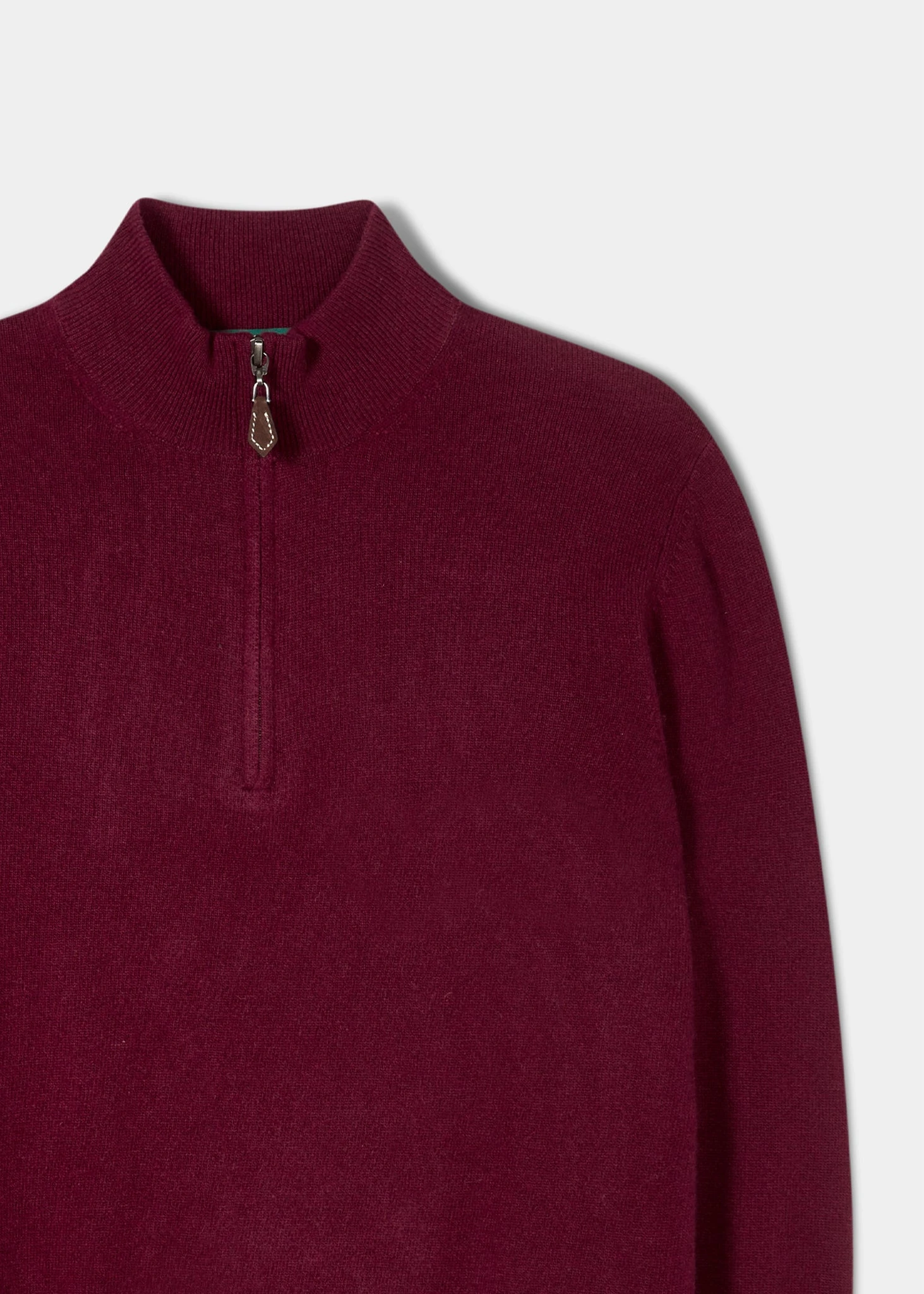 This sweater is part of our new collection for 2021 with a half zip mock neck, a leather zip pull and is crafted from pure Geelong wool.