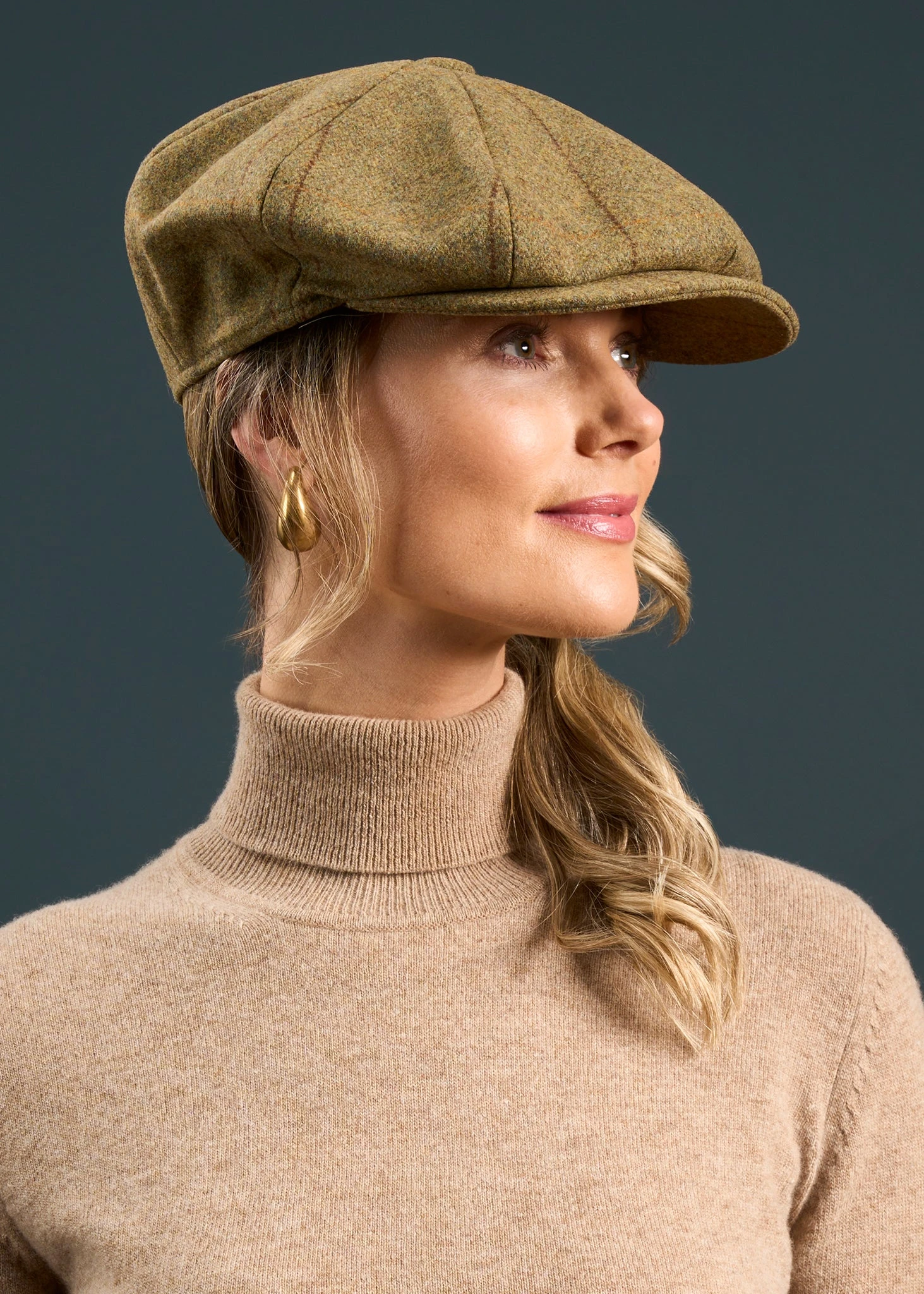 This stunning tweed country cap in Grove is made with a 100% tweed wool outer and a go to cap for days in the field.