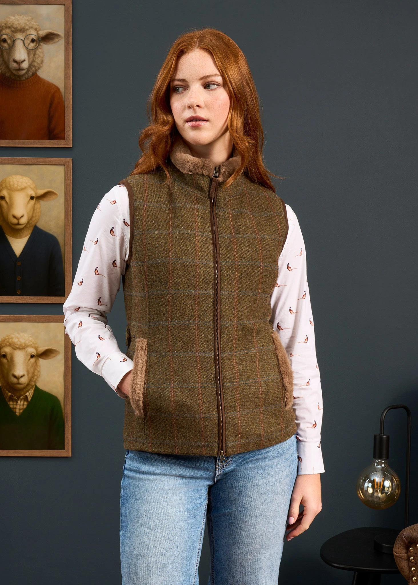 Combrook Ladies Tweed Gilet In Willow – Regular Fit