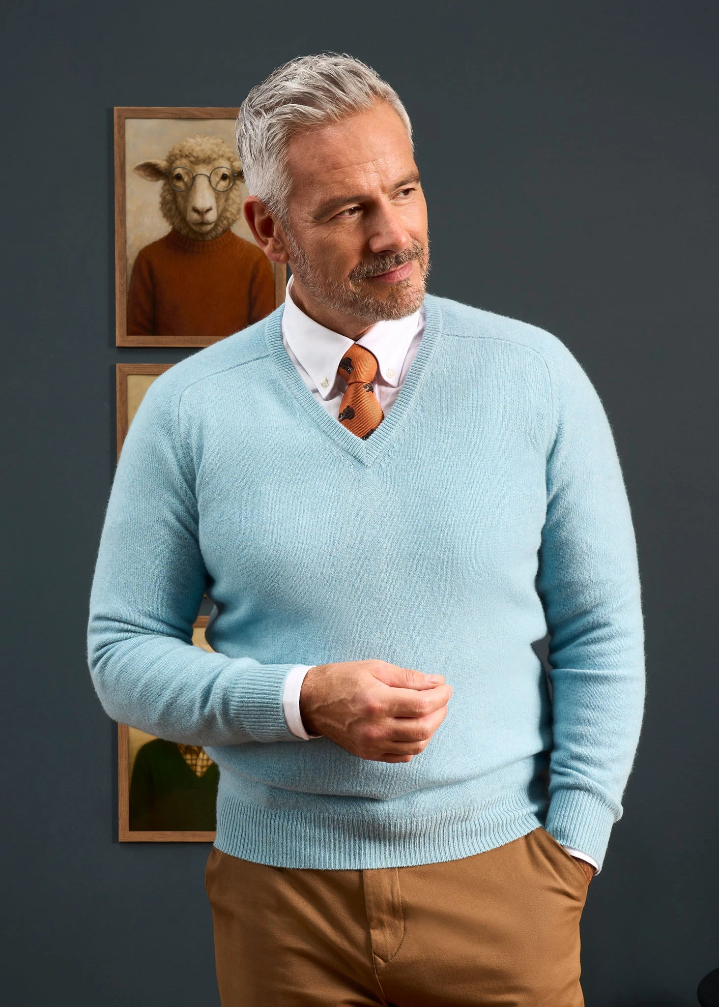 A true classic. This V-neck jumper in Blue Seal is crafted from pure super-soft lambswool and spun by Europe’s oldest spinner, Z. Hinchliffe, founded in Yorkshire, England 250 years ago. It has a full saddle shoulder shaping, generously cut across the waist, designed with a relaxed, more-traditional and comfortable fit.
