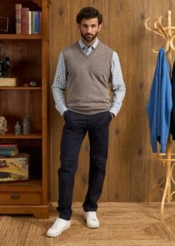 A true classic. This V-neck jumper in Cobble is crafted from pure super-soft lambswool and spun by Europe’s oldest spinner, Z. Hinchliffe, founded in Yorkshire, England 250 years ago. It has a full saddle shoulder shaping, generously cut across the waist, designed with a relaxed, more-traditional and comfortable fit.