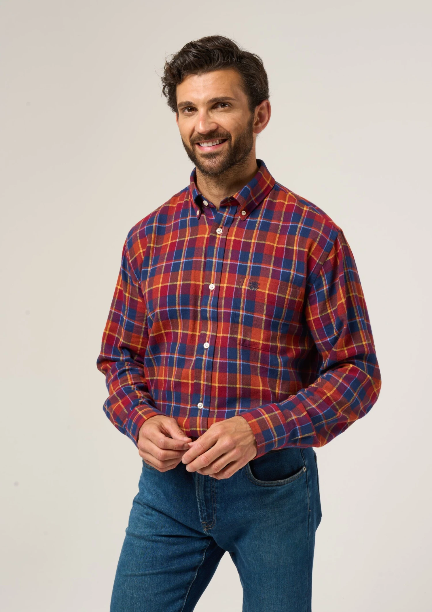 Pep up your winter wardrobe with this new addition to our shirt collection. Crafted from a warming luxuriously soft cotton flannel, this summary-down collar shirt comes in a choice of three eye-catching checks. We guarantee it will quickly become a wardrobe favourite!
