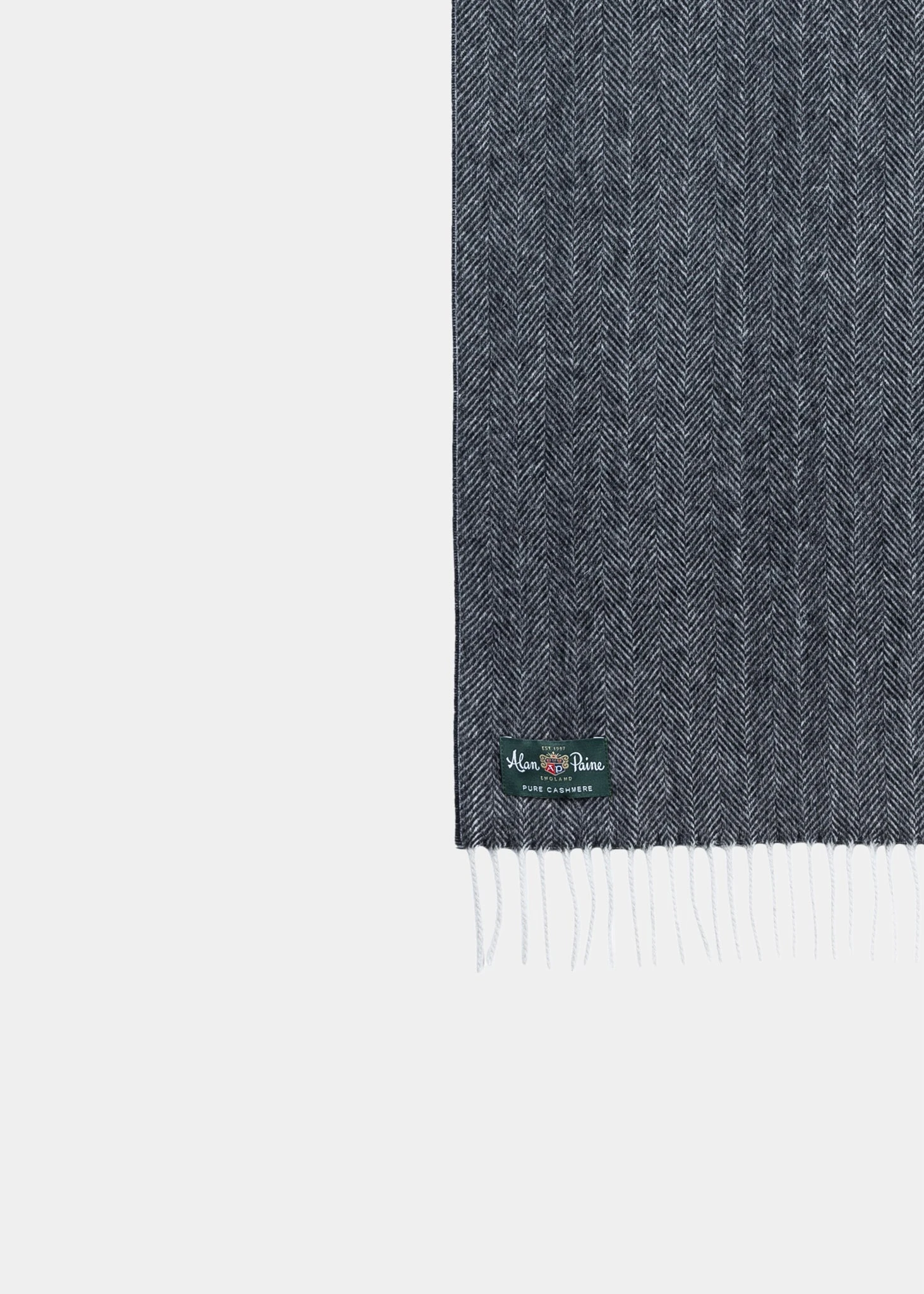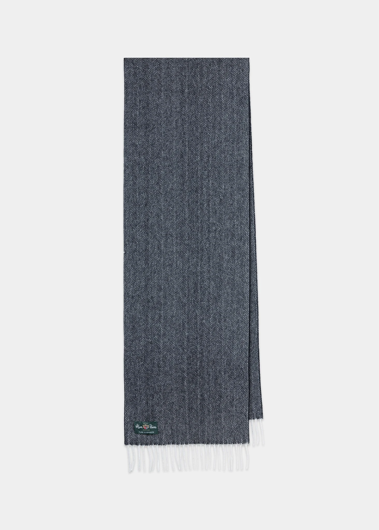 This luxury scarf from Alan Paine is great for wrapping up against the cold in style. A bold herringbone scarf crafted from pure cashmere.