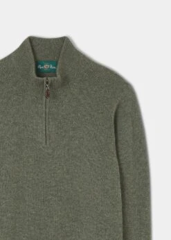 Aberfoyle Men’s Lambswool Cable Front Zip Mock Neck In Cocoa