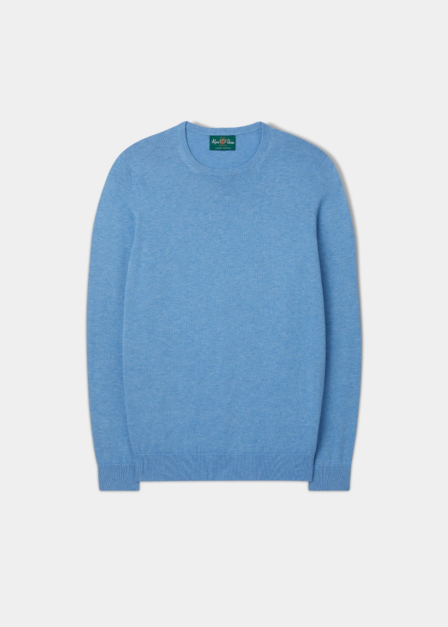 This versatile lightweight crew neck in Carolina Blue embraces casual cool. Team with a crisp white shirt and tailored shorts for effortless summer chic or pair with a simple white tee and chinos for a more relaxed look. The fusion of Pima Cotton and Cashmere creates the softest, most comfortable cotton blend you’ll wear. Described as Cotton of the Gods, Pima Cotton is sumptuously soft whilst the delicacy and breathability of Cashmere ensures you won’t get too warm. It’s the perfect choice for warm spring days and cool summer evenings, enabling you to transition through the seasons with ease.