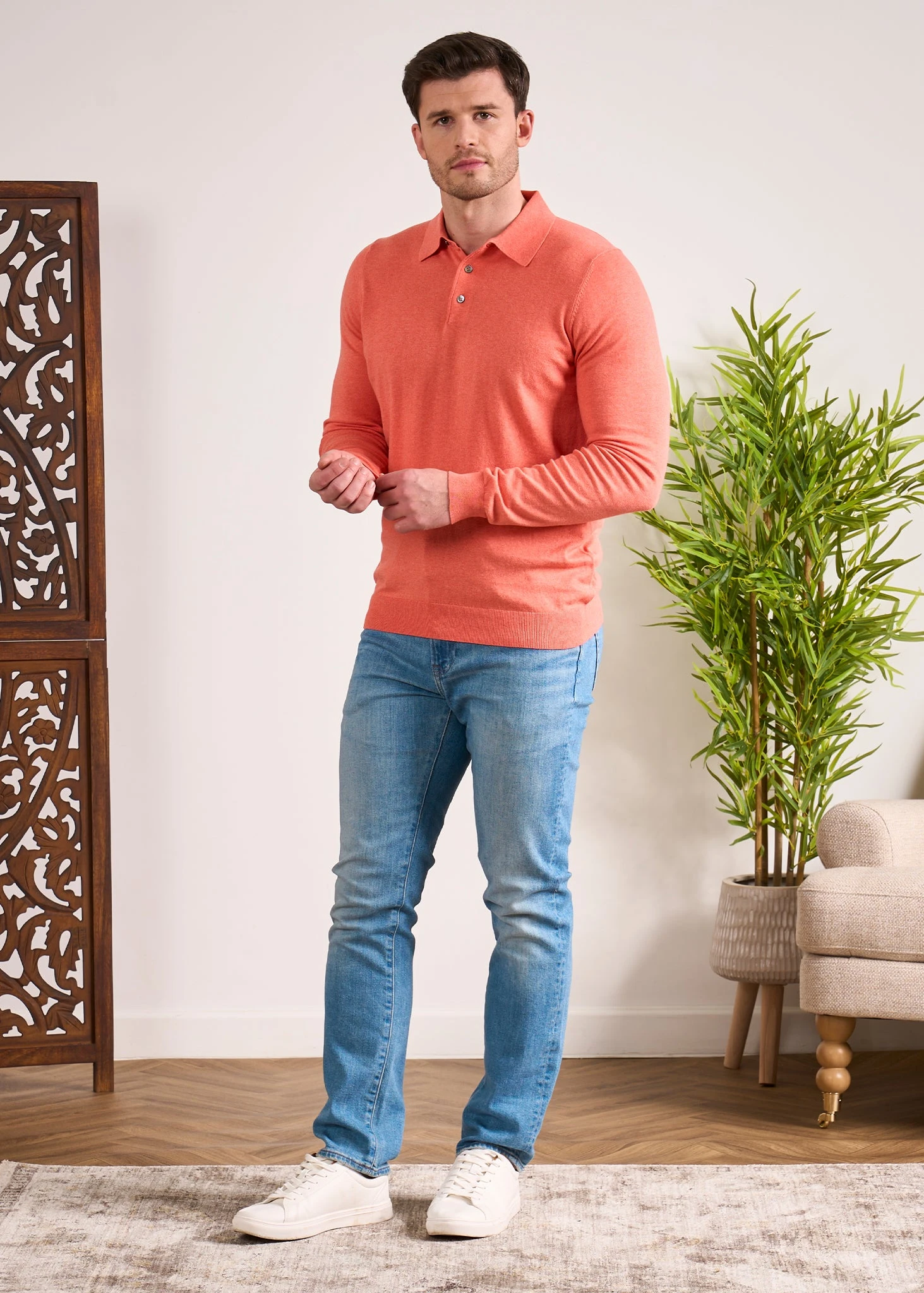 The perfect smart casual wardrobe essential for stylishly cool dressing when the sun goes down. It’s time to cheer up your summer chinos with this supremely soft and silky polo in Coral.